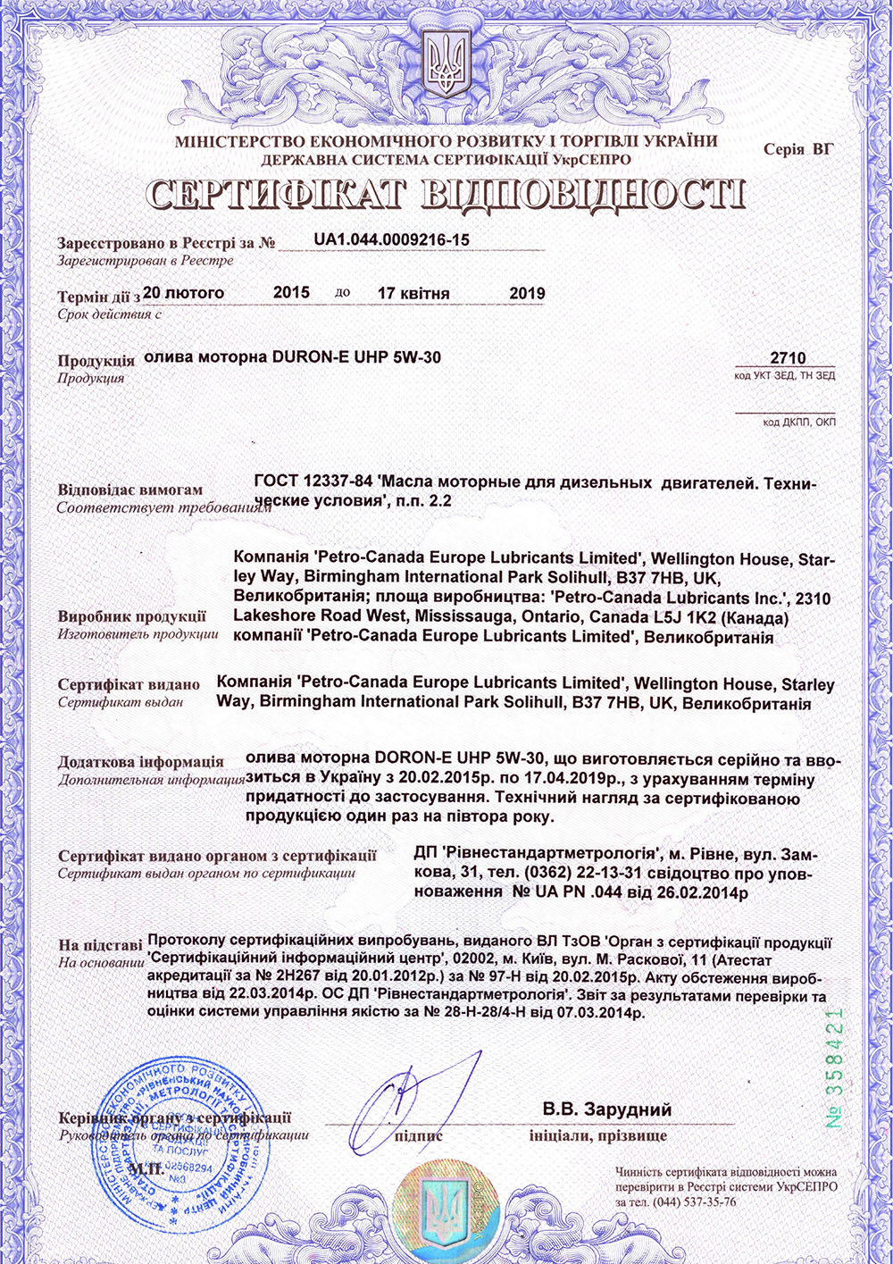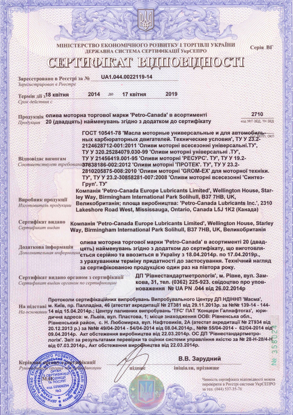 Вся продукція Petro-Canada виробляється на одному заводі (м. Міссісага, Канада). Імпортуємо напряму. Даємо гарантію. Підробка виключена